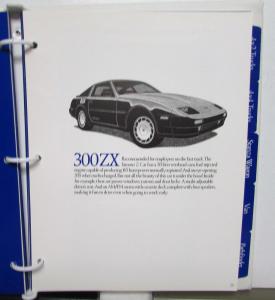 This is an original 1989 Nissan Fleet Buyers Guide, it is in good condition and was put together to be an easily accessed resource for the salesmen in helping the customer placing an order, answering questions, or just promoting the line. Included are features, options, and more for the Sentra, 4x2/4x4 Trucks, Stanza, Maxima, Pulsar NX, 240SX, 300 ZX, Wagon, Van, and Pathfinder.
