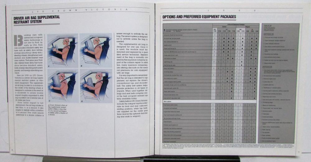This is an original sales brochure for the 1990 Ford LTD Crown Victoria. This was made to show off nice photos of the model, specifications, available options, and more. This brochure is in good condition, however, might have some signs of wear or age, see photos for reference. This is a great piece and would make a great addition to any collection!