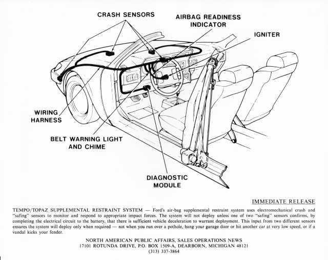 1990 Ford Tempo/Mercury Topaz Supplemental Restraint System Illustrative Press Photo.
