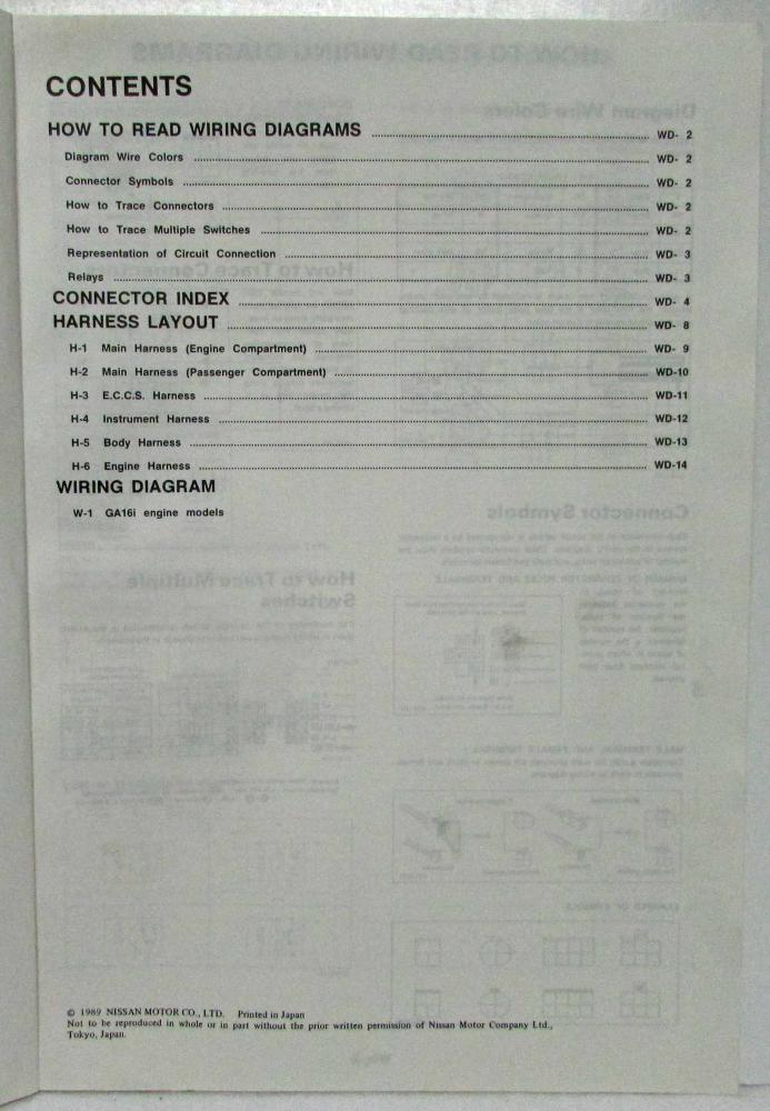 1989 Nissan Sentra 4-Door Sedan XE for U.S.A and GXE for Canada Electrical Wiring Diagram Manual. ORIGINAL.