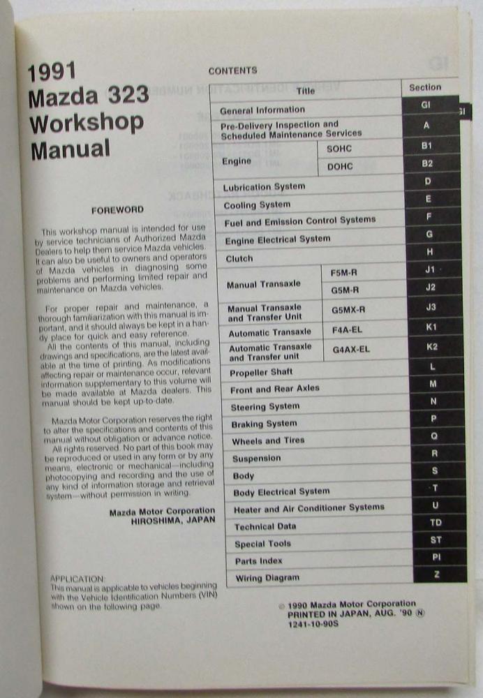 1991 Mazda 323 Service Shop Repair Manual. Original.