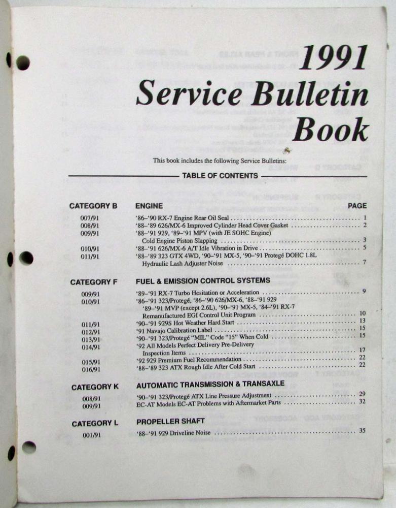 Service bulletins were released after the service shop repair manuals and were meant to address issues that may have cropped up, to make improvements or introduce newer procedures for doing things. This is a handy one-stop compilation of those bulletins released during an entire year for Mazda vehicles.