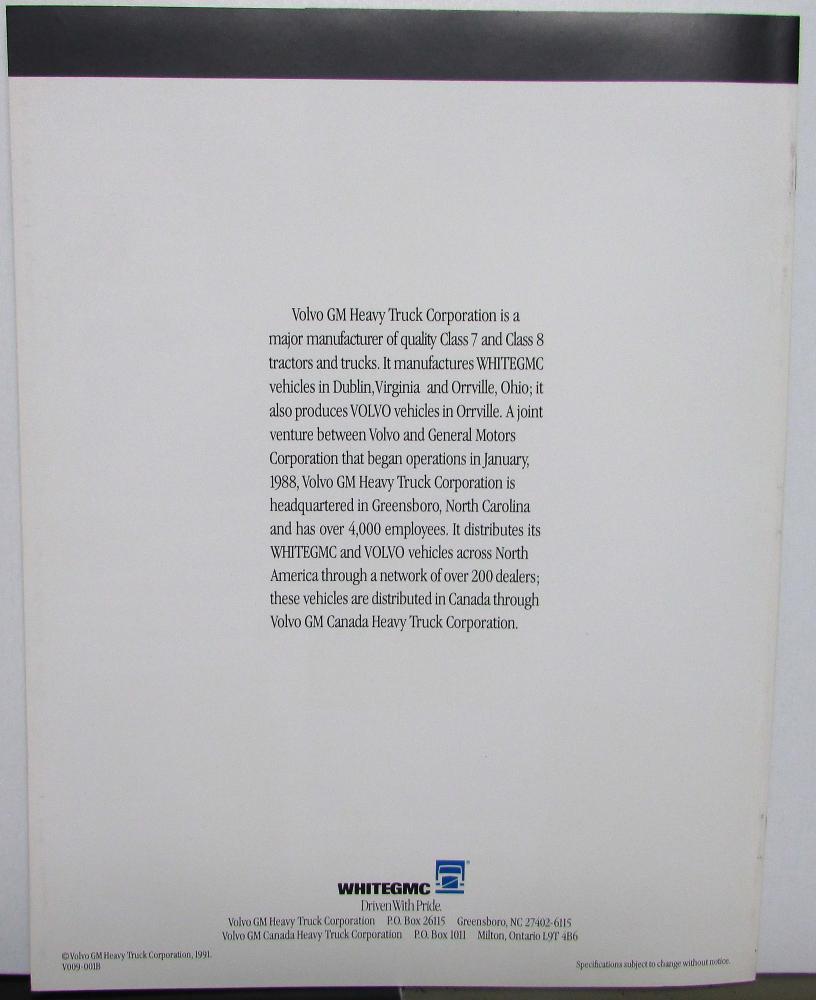 This original 1992 White GMC Conventional and Integral Sleeper Tractor sales brochure is in excellent condition and includes very nice, colorful glossy photos along with information for the features on the models. This brochure would make a great addition to any collection!