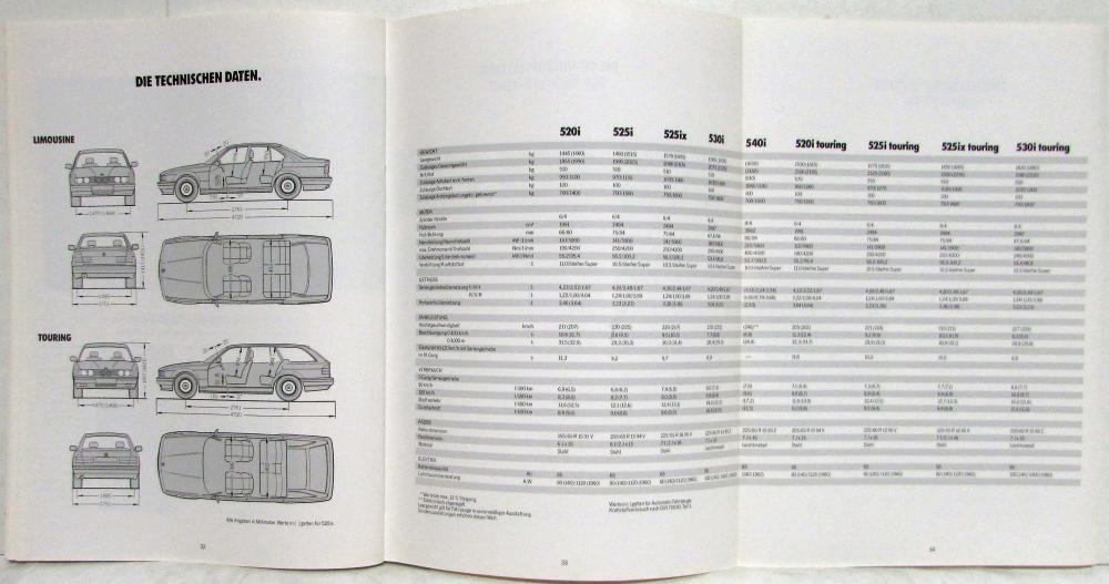 1992 BMW 5 Series Die Neue Souveränität Sales Brochure. Original. NOTE: German Text.
