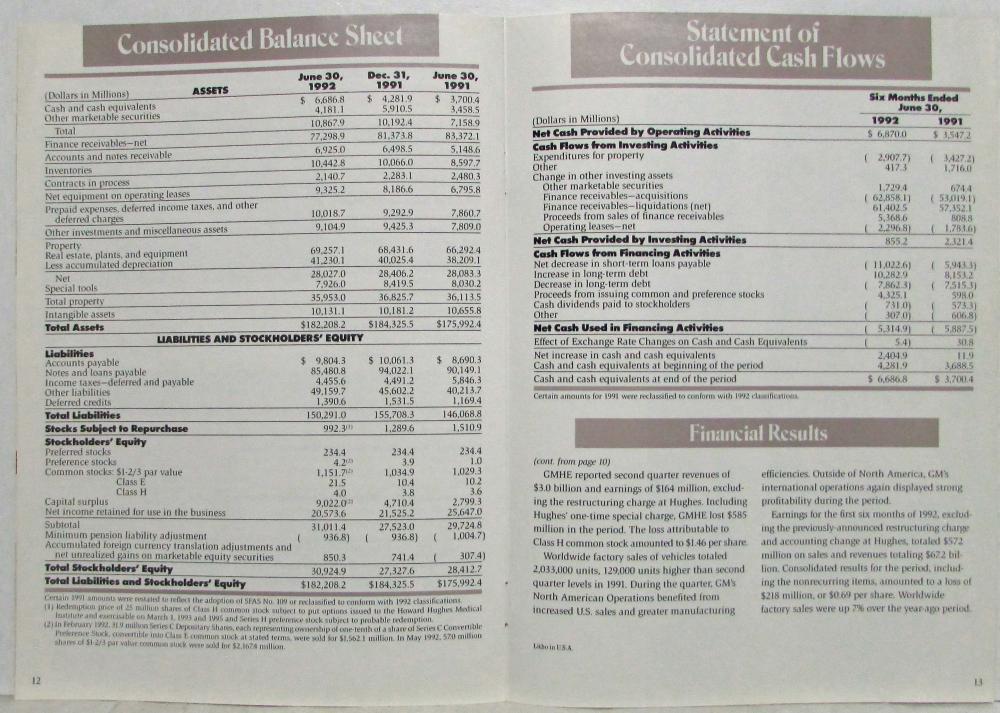 1992 General Motors GM Second Quarter Report for Stockholders. Original.