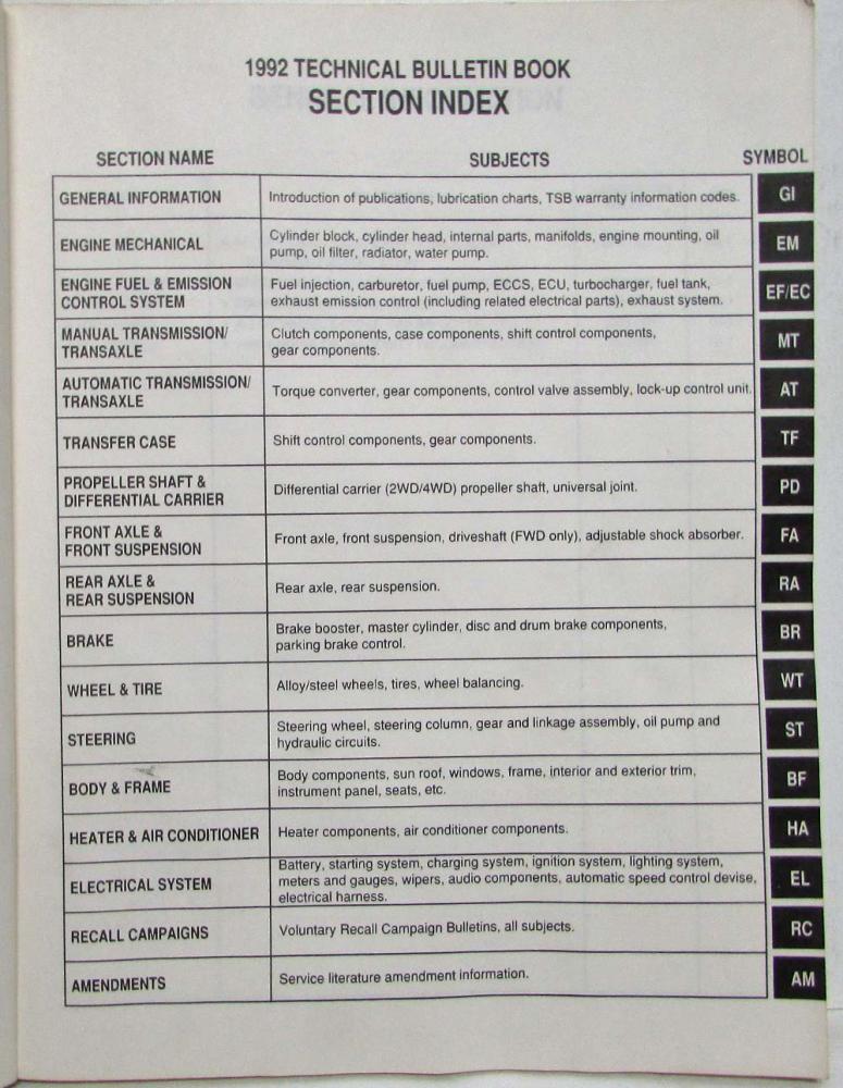 1992 Nissan Technical Bulletins Manual Including Recall Campaign Bulletins. ORIGINAL.
