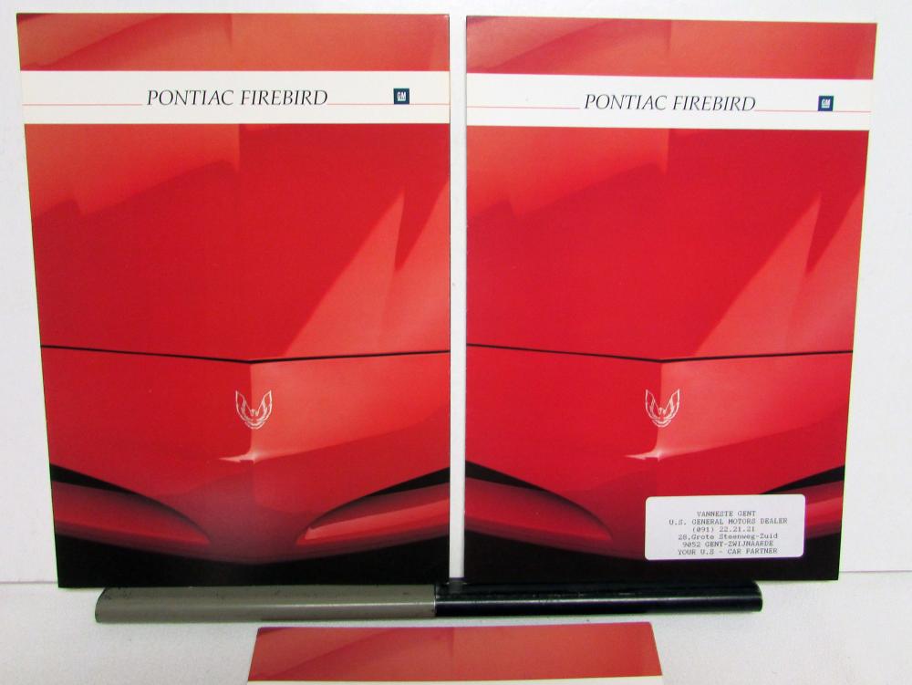 This is an original set of (3) 1992 Pontiac fold-out folders featuring the Firebird model and is in good condition. Included are several very nice photos, features, color options, and much more. THIS BROCHURE IS PRINTED IN DUTCH/GERMAN TEXT.