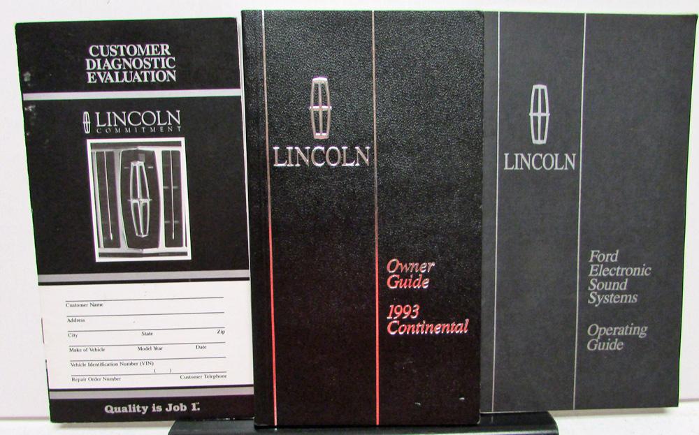 Original 1993 Lincoln Continental Owner's Manual. This Manual gives Care, Maintenance and Operation Instructions for these Models. It is in excellent condition. It includes the Sound System and Customer Diagnostic Evaluation Booklets. Very rare and informative piece of automotive history that will display well.