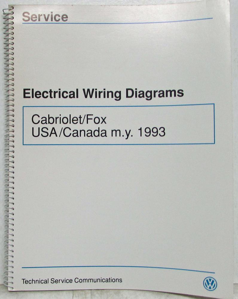 This publication contains electrical wiring diagrams for the Volkswagen Cabriolet and Fox models, model year 1993 sold in the USA and Canada.