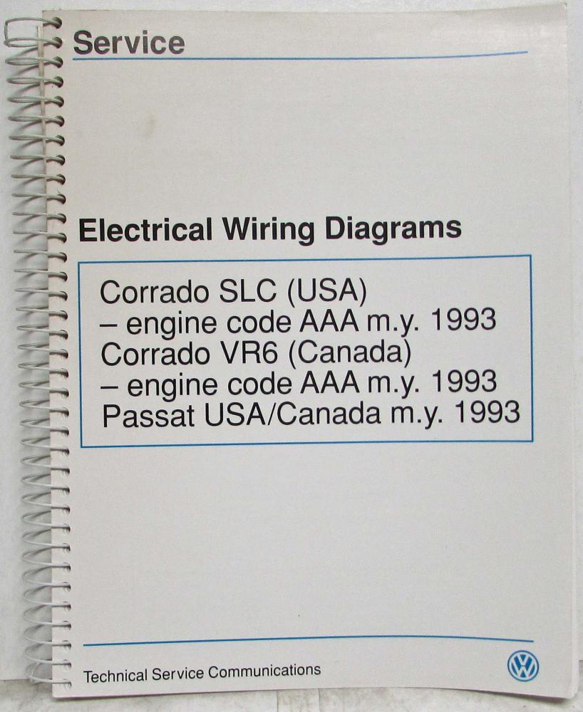 1993 Volkswagen VW Electrical Wiring Diagrams. Original. Corrado SLC (USA - engine code AAA MY 93), Corrado VR6 (Canada - engine code AAA MY 93), Passat (USA/Canada MY 93).