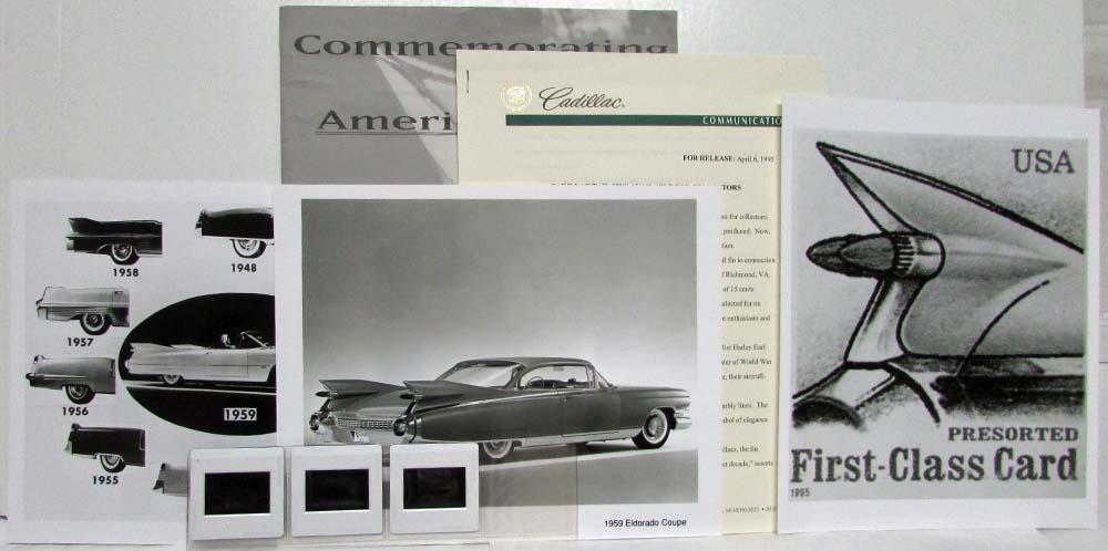 1995 Cadillac Press Kit Commemorating an American Icon with a US Postage Stamp featuring the 1959 El Dorado Tail Fin. Includes Press Photos and Color Slides. ORIGINAL.