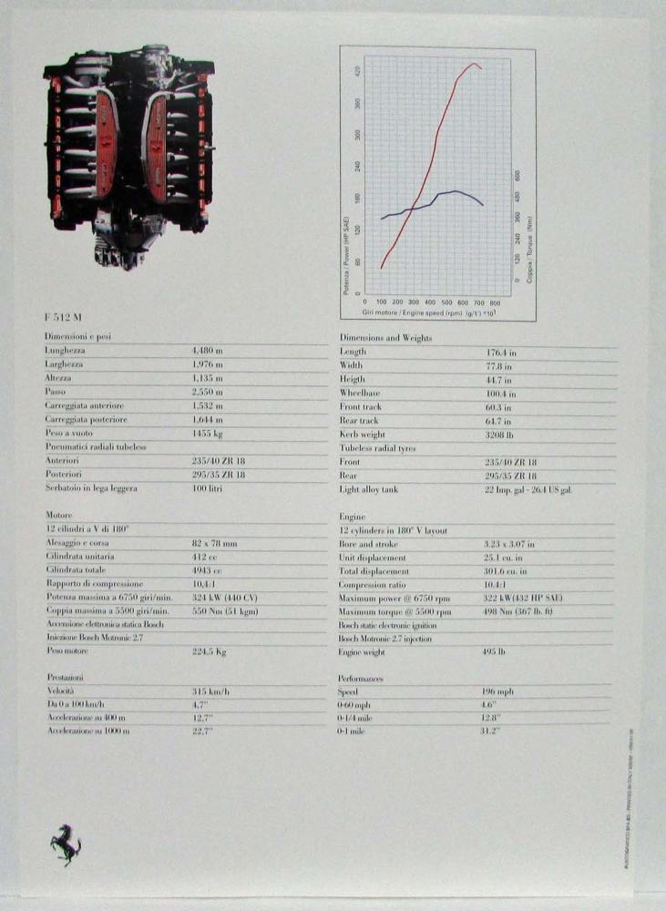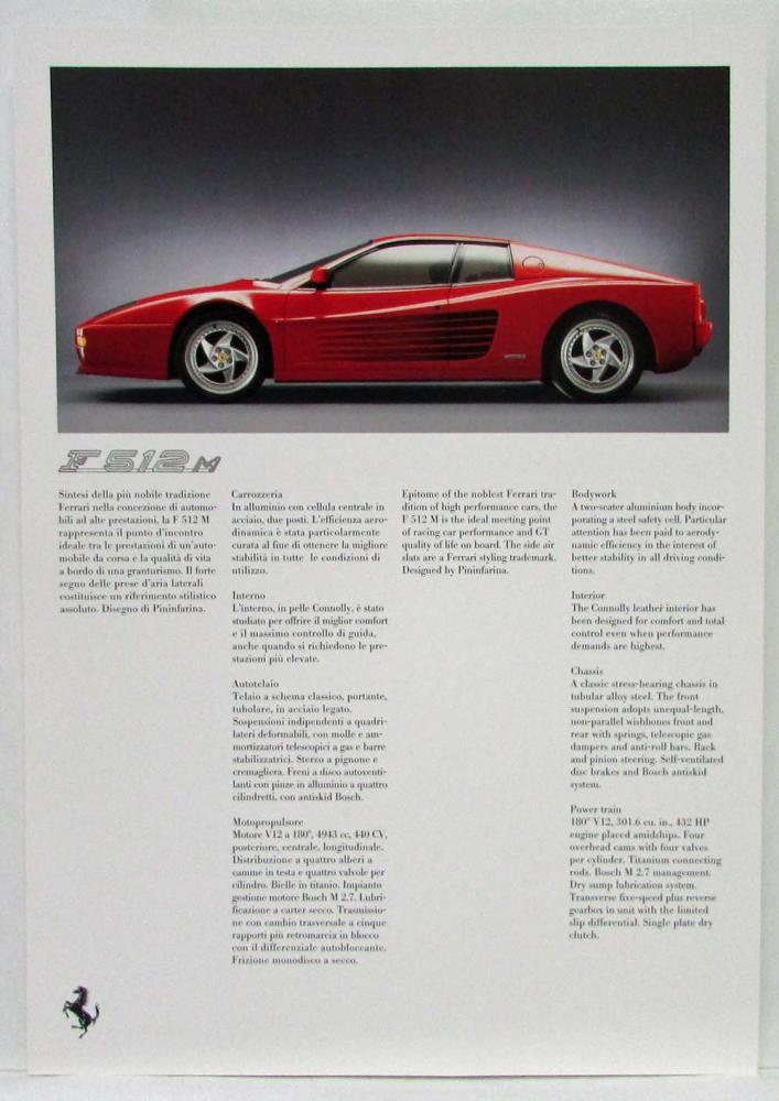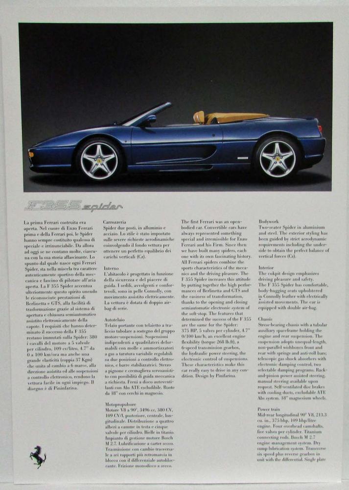 1995 Ferrari Spec Cards Press Kit. Note: Multi-Language Italian and English.