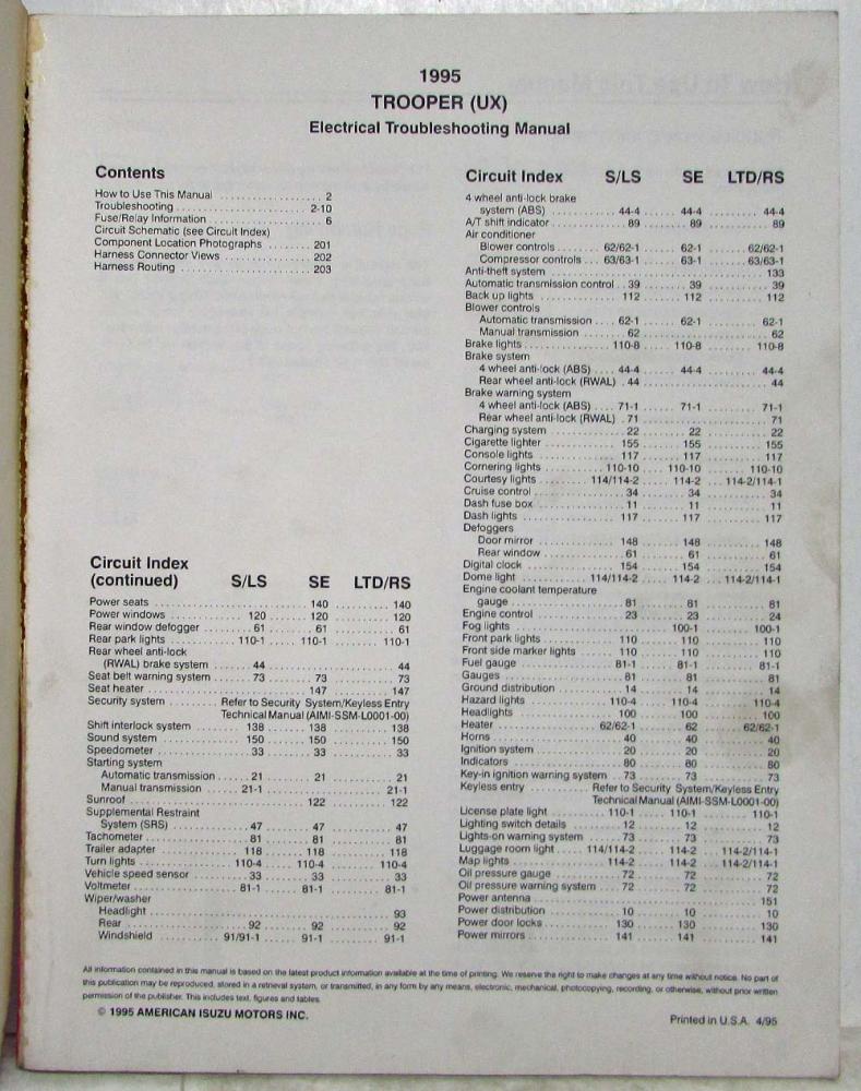 1995 Isuzu Trooper (UX) Electrical Troubleshooting Manual. Original.