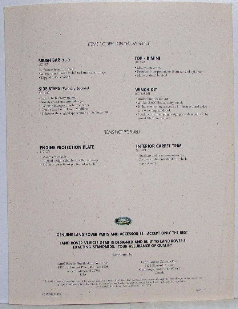 1995 Land Rover Defender 90 Vehicle Gear Tri-Fold Sales Brochure. Original.