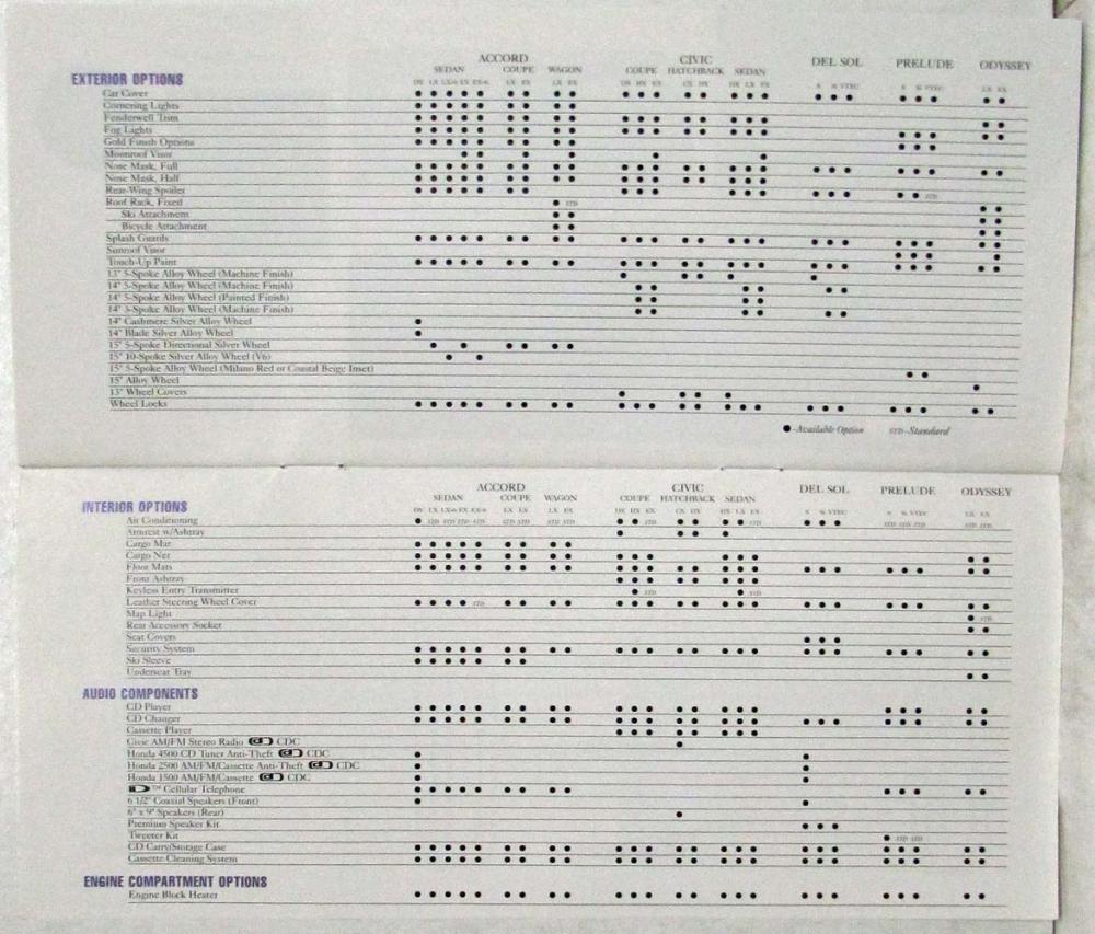 1996 Honda Dealer Installed Options Sales Brochure. Original.