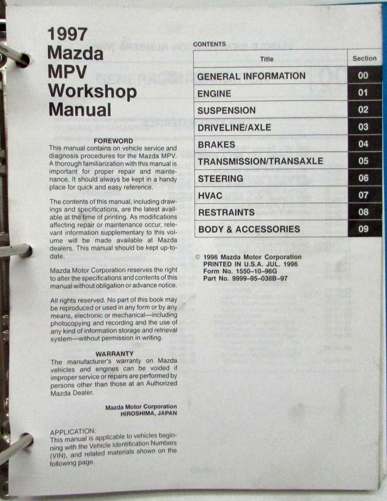 1997 Mazda MPV Service Shop Repair Manual. Original.