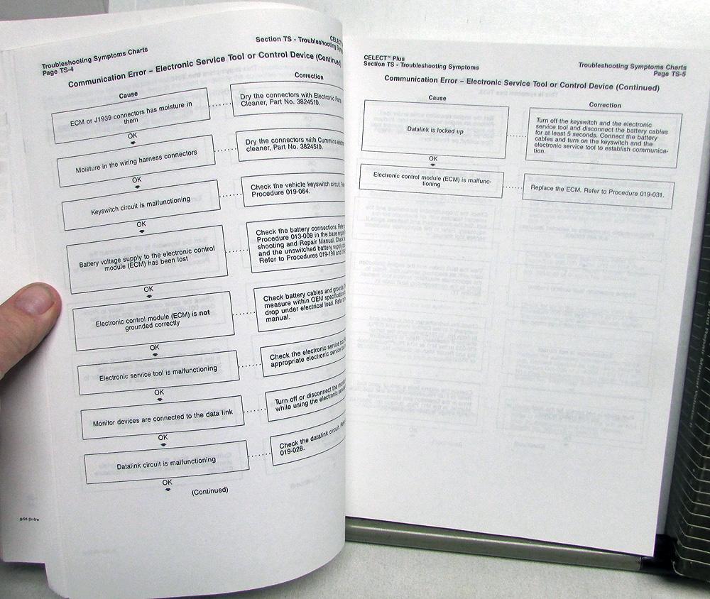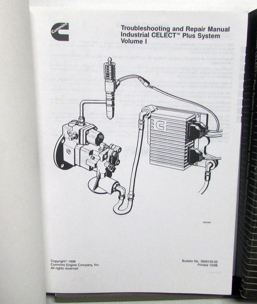 Original 1998-99 [dated 12/98] Cummins Diesel Engine Troubleshooting and Repair Manual Set. This 2 Volume Set of Service/Shop Manuals cover the Industrial Celect Plus System for Diesel Engines. This is what Dealers used to service and repair your vehicle with this ECM. This Manual provides instructions for troubleshooting and repairing the Celect Plus System. Very hard to find and useful tool with tons of information, procedures, specifications, diagnostic and illustrations. It is in good condition with minor wear and soiling [see photos]. Bulletin No. 3666130-02
