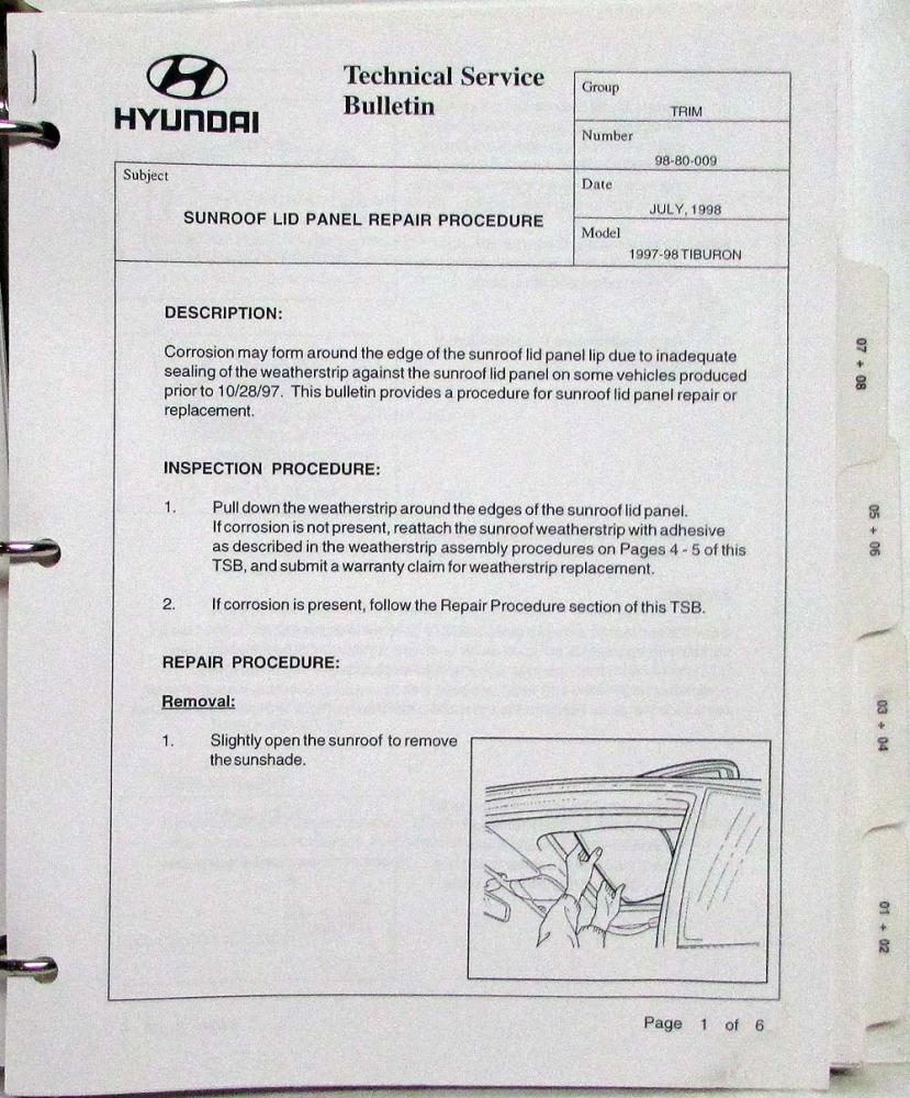 98-80-009 7/98 Sunroof Lid Panel Repair Procedure - 1997-1998 Tiburon