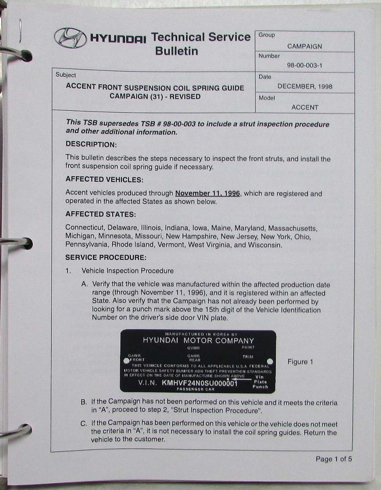 1998 Hyundai Technical Service Bulletins in Folder. Original.