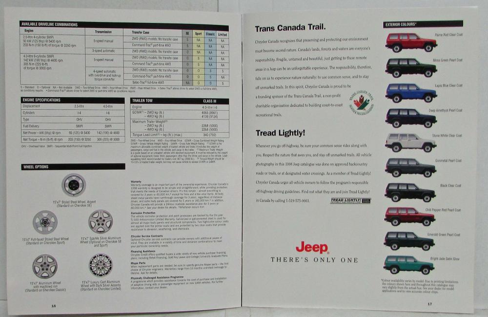 1998 Jeep Cherokee Sales Brochure. Original. NOTE: CANADIAN Market