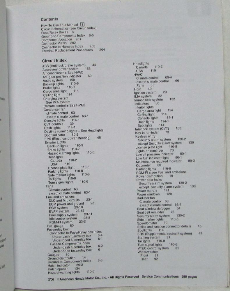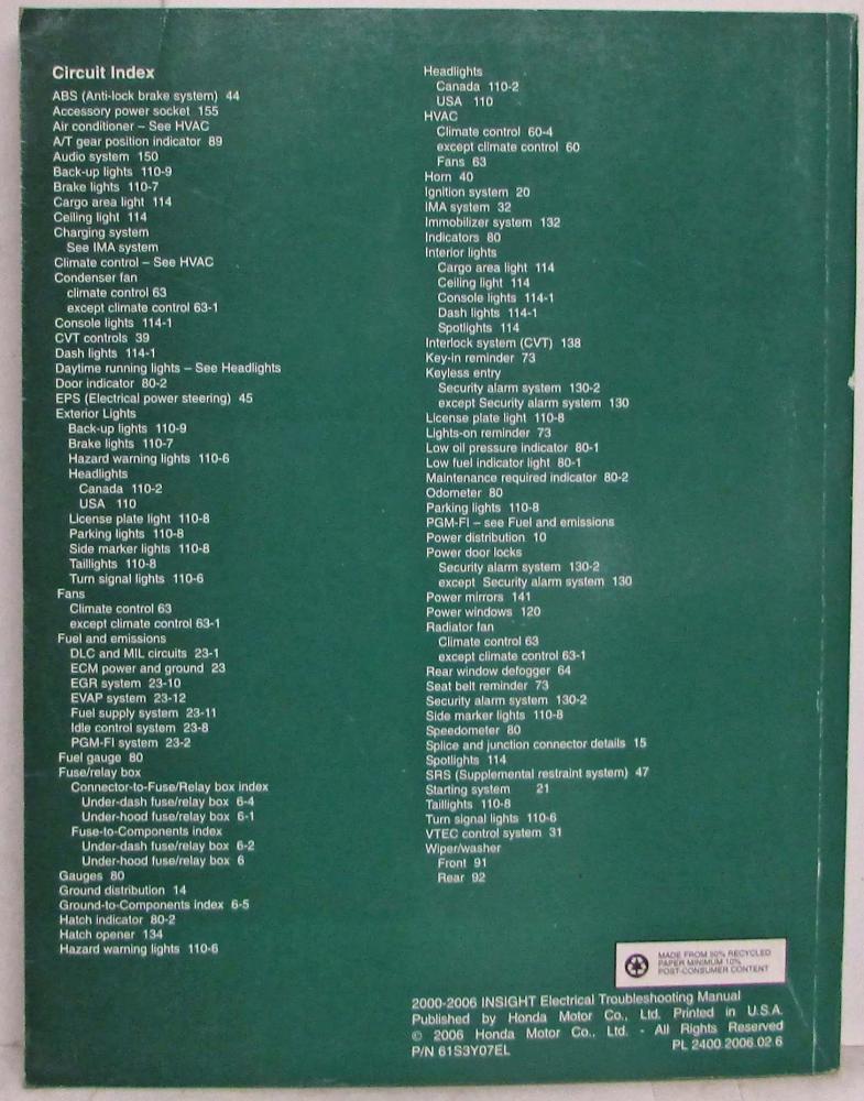 2000-2006 Honda Insight Electrical Troubleshooting Service Manual. ORIGINAL.