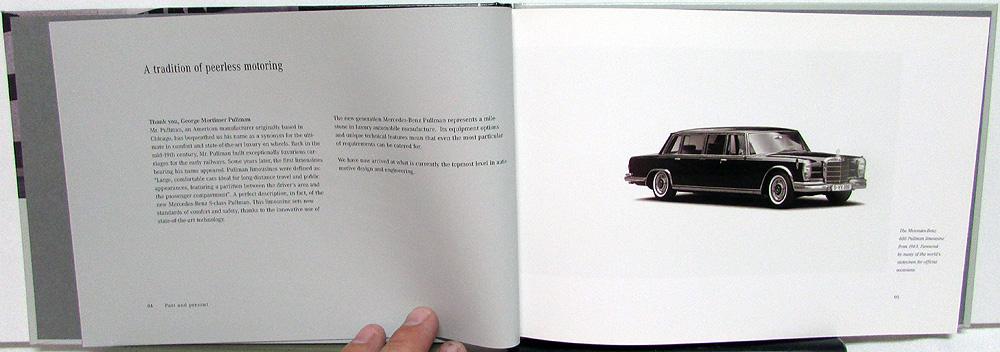 2000 Hardback Mercedes-Benz Dealer Sales Brochure. This beautifully illustrated Prestige Brochure highlights the Features, Options and Specifications of the S-Class Pullman Limousine Models. It is in good condition with minor wear and blemishing [see photos].