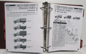 This is an original 2001 Ford Truck Source Book, it is in good condition and was put together to be an easily accessed resource for the salesmen in helping the customer placing an order, answering questions, or just promoting the line. Included are purchase motivators, specifications, competition, and more for the Ranger, F Series, Super Duty F 250/350 Pickups, SD F 350-550 Chassis Cabs, SD F-650/750 Chassis Cabs, and E Series. The tab Hot Sheets is empty, either the dealership never added them when they were received, or they just were never sent out. Either was a common occurrence.