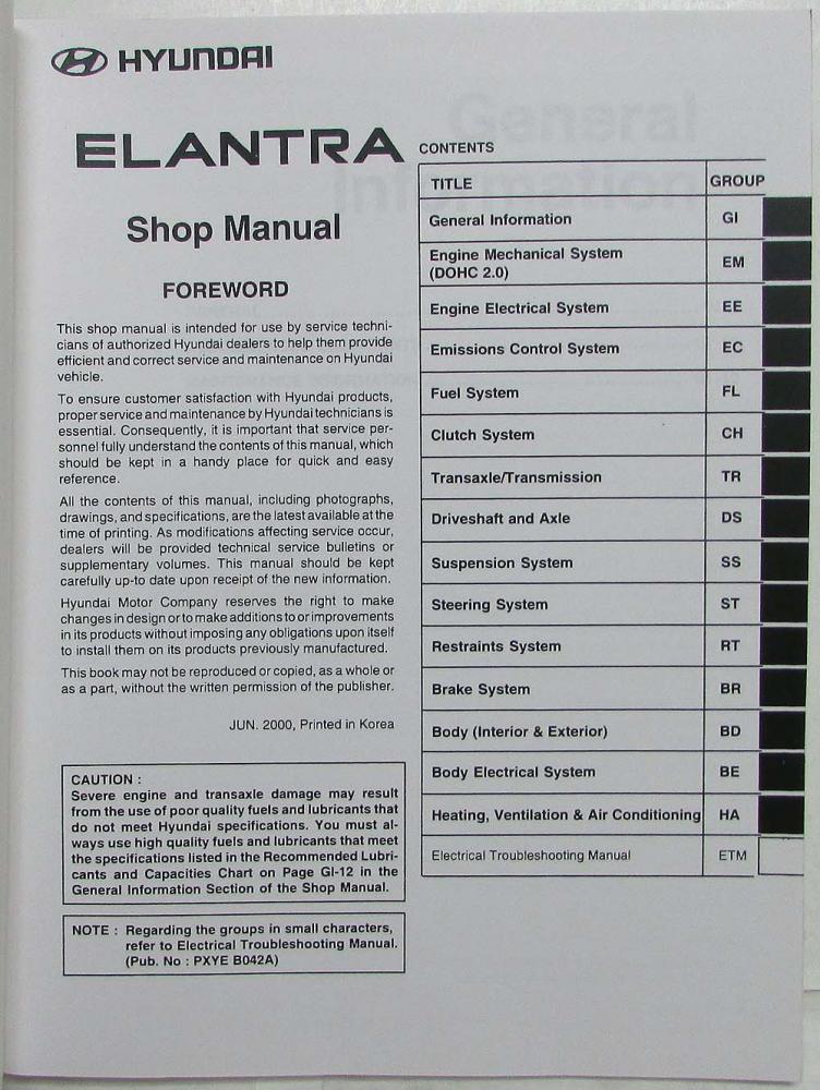 2001 Hyundai Elantra Service Shop Repair Manual. Original.