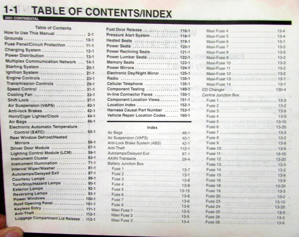 Good original 2001 Lincoln Dealer Electrical Wiring Diagram Service Manual. This manual was used by the Factory Dealership to diagnose and identify electrical problems on the Continental Models. It contains a wealth of information and will prove invaluable in service procedures on this model. 12172-01