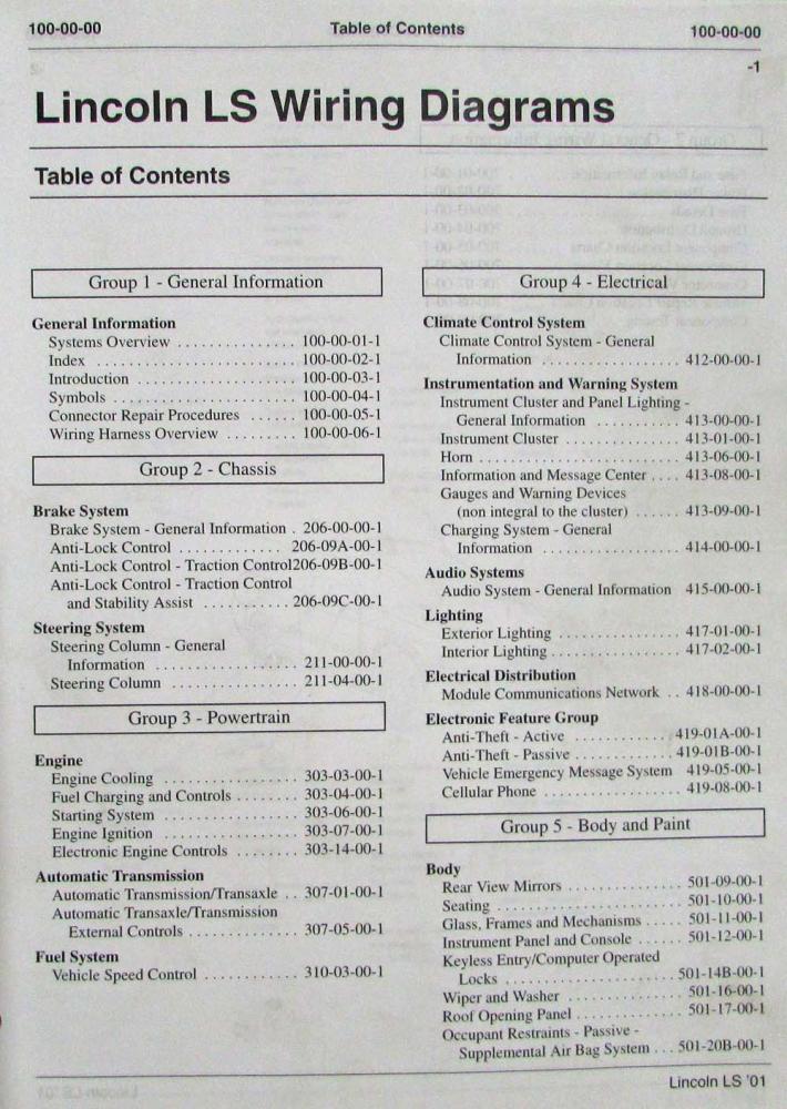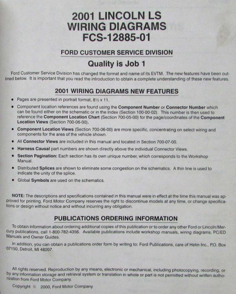 Good original 2001 Lincoln Dealer Electrical Wiring Diagram Service Manual. This manual was used by the Factory Dealership to diagnose and identify electrical problems on the LS Models. It contains a wealth of information and will prove invaluable in service procedures on this model.