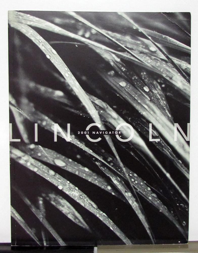 2001 Lincoln Navigator Sales Brochure & Specifications. This brochure is bound together more like a book versus using staples. The inside pages have several pictures of the Lincoln Navigator showing both the exterior and interior. The last few pages contain specifications and paint chips for the exterior and interior.