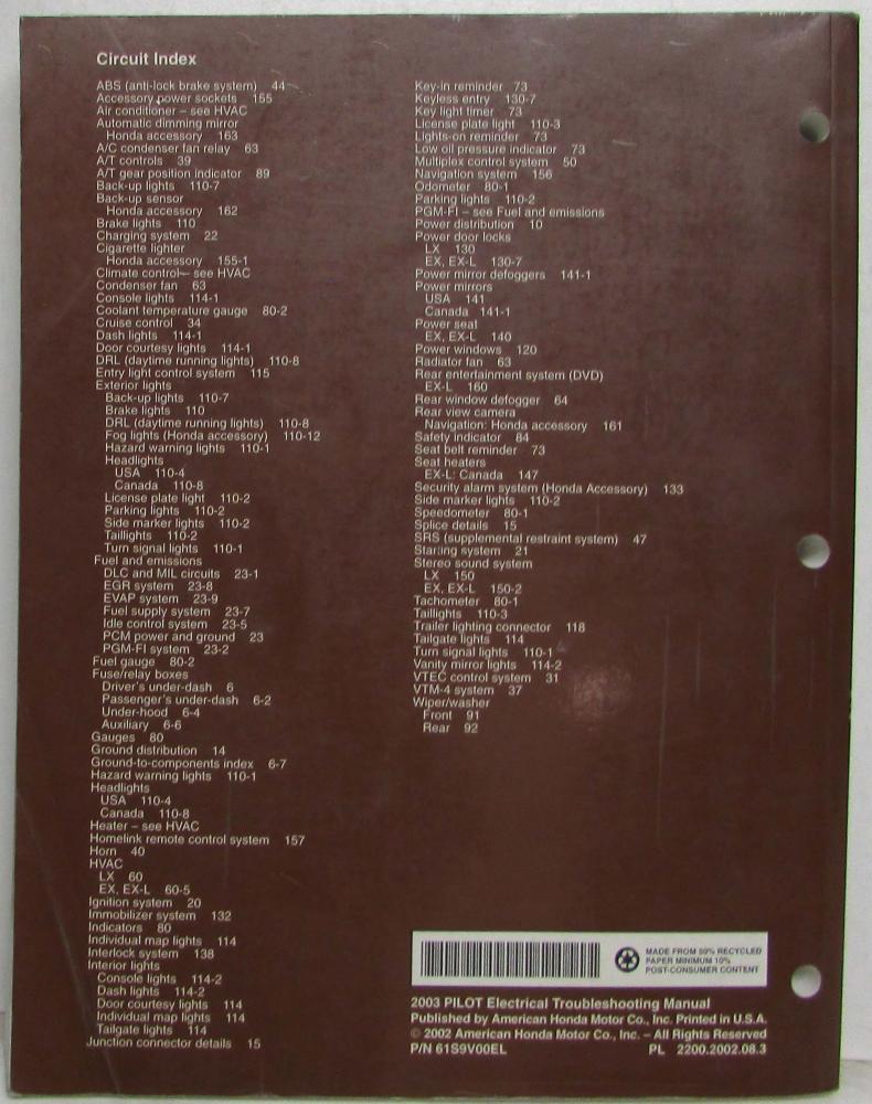 2003 Honda Pilot Electrical Troubleshooting Service Manual. ORIGINAL.