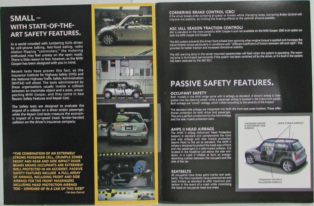 2003 MINI Motor with Excellent Safety Features Sales Folder. Original.