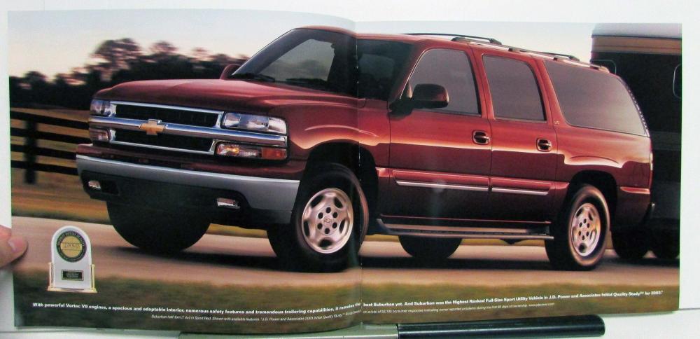 This is an original 2004 Chevrolet sales brochure featuring the Suburban. This was made to show off nice photos of the model, available info, specifications, and more. This is in good condition, however, might have some signs of wear or age, see photos for reference. This is a great piece and would make a great addition to any collection!