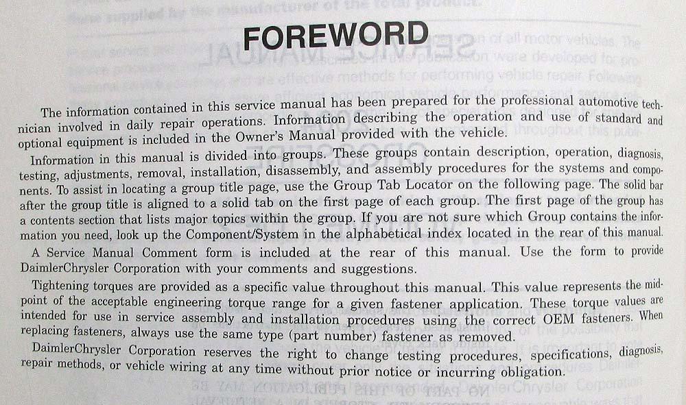 Developed by Chrysler LLC, the information contained in this service manual was prepared for the professional automotive technician involved in daily repair operations.