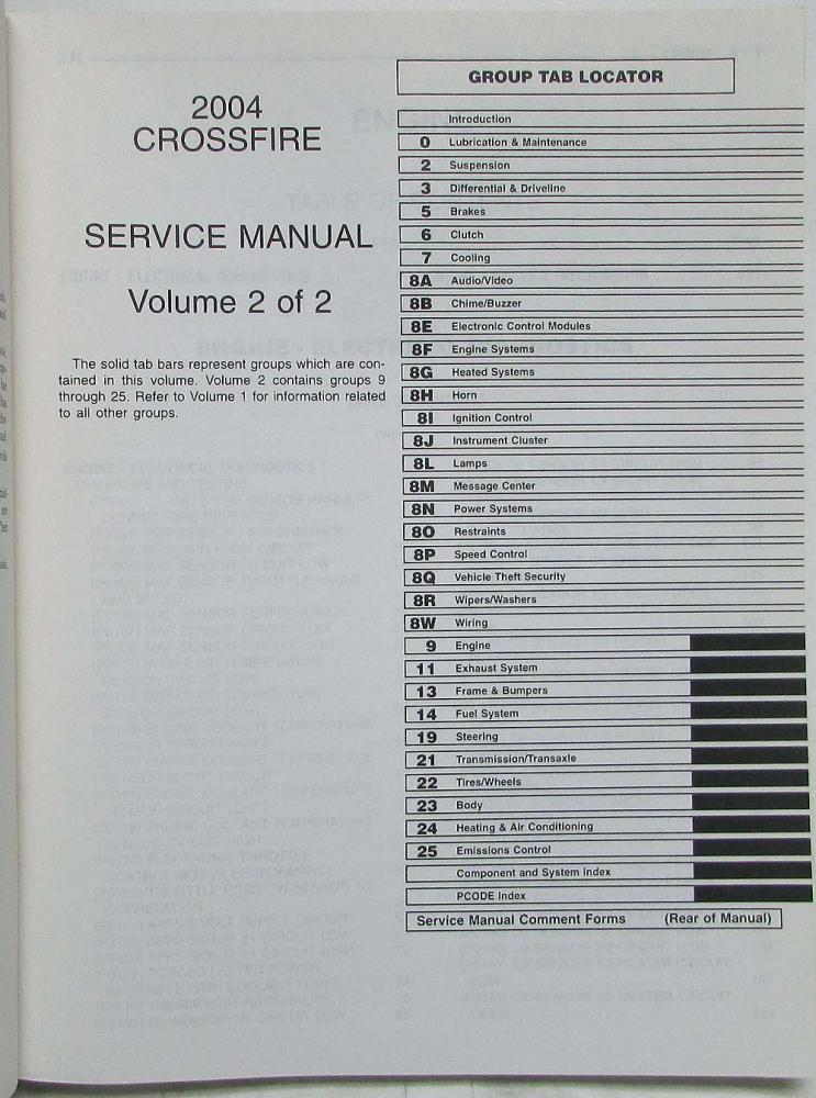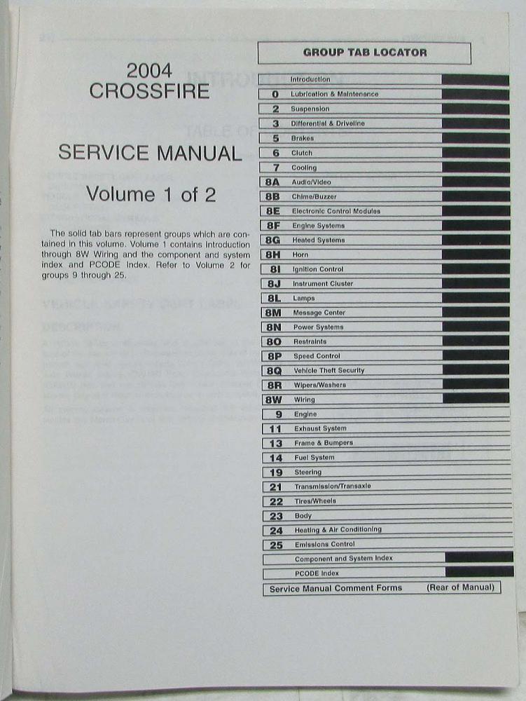 2004 Chrysler Crossfire Service Shop Repair Manual. 2 Volume Set.