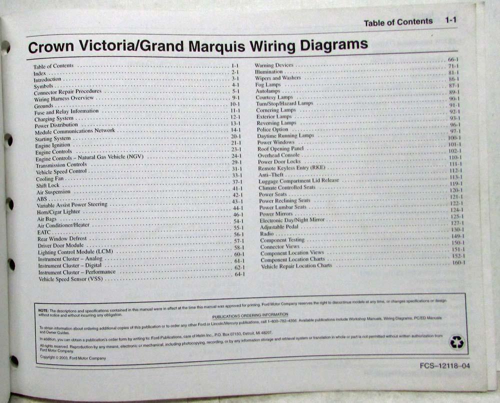 Good original 2004 Ford/Mercury Dealer Electrical Wiring Diagram Service Manual. This manual was used by the Factory Dealership to diagnose and identify electrical problems on the Crown Victoria & Grand Marquis Models. It contains a wealth of information and will prove invaluable in service procedures on this model. 12118-04