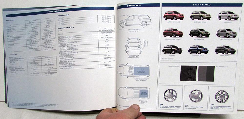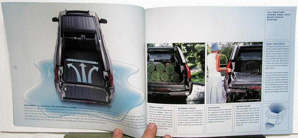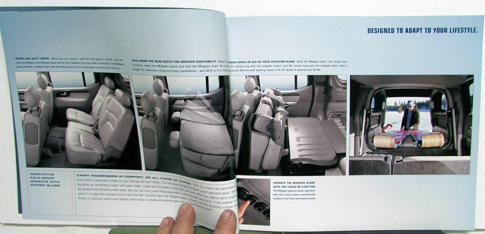 Original 2004 GMC Envoy XUV, part SUV and part Pickup Truck sales brochure. See contents in photo. Full of text and glossy photos. Good condition with minor wear and blemishing. 108-04