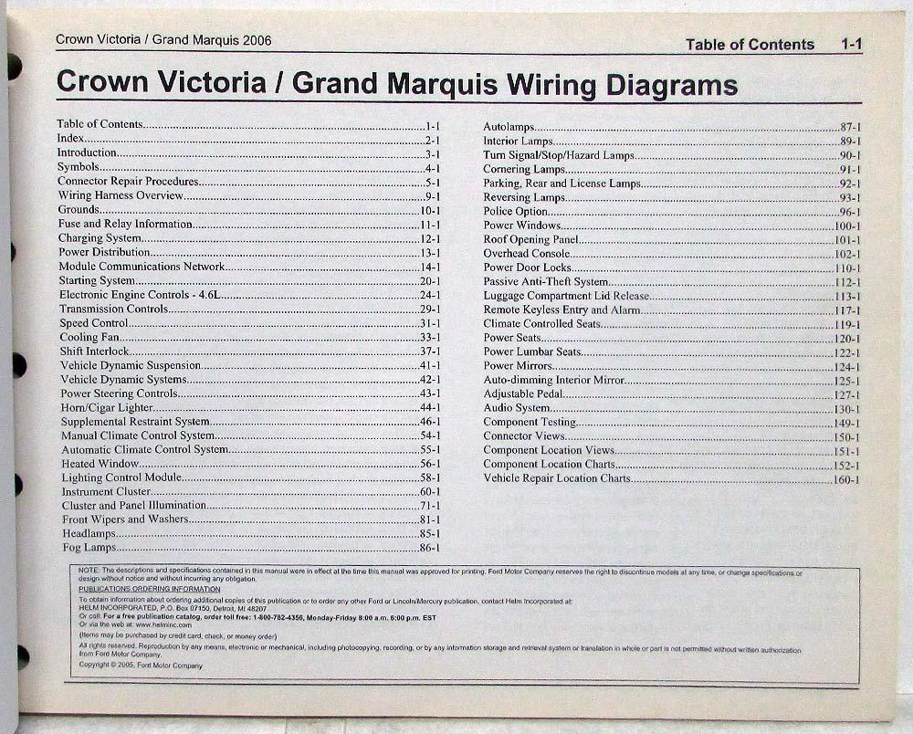 2006 Ford Crown Victoria and Mercury Grand Marquis Electrical Wiring Diagram Manual. This manual was used by the Factory Dealership to diagnose and identify electrical problems on the Crown Victoria and Grand Marquis Models. It contains a wealth of information and will prove invaluable in service procedures on this model. 12118-07