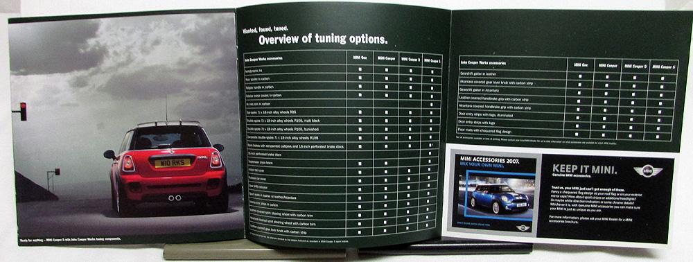 2007 Mini Cooper Dealer Sales Brochure. This Catalog shows the many Accessories available for your Mini from the John Cooper Works. It is in very good condition with minor wear [see photos].