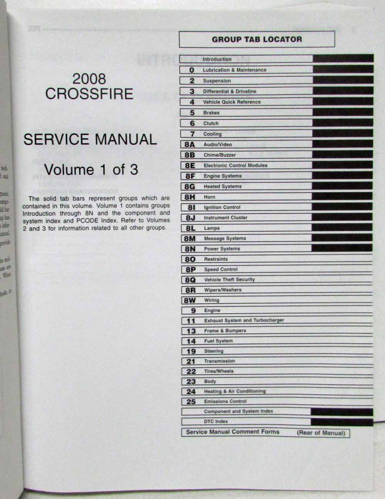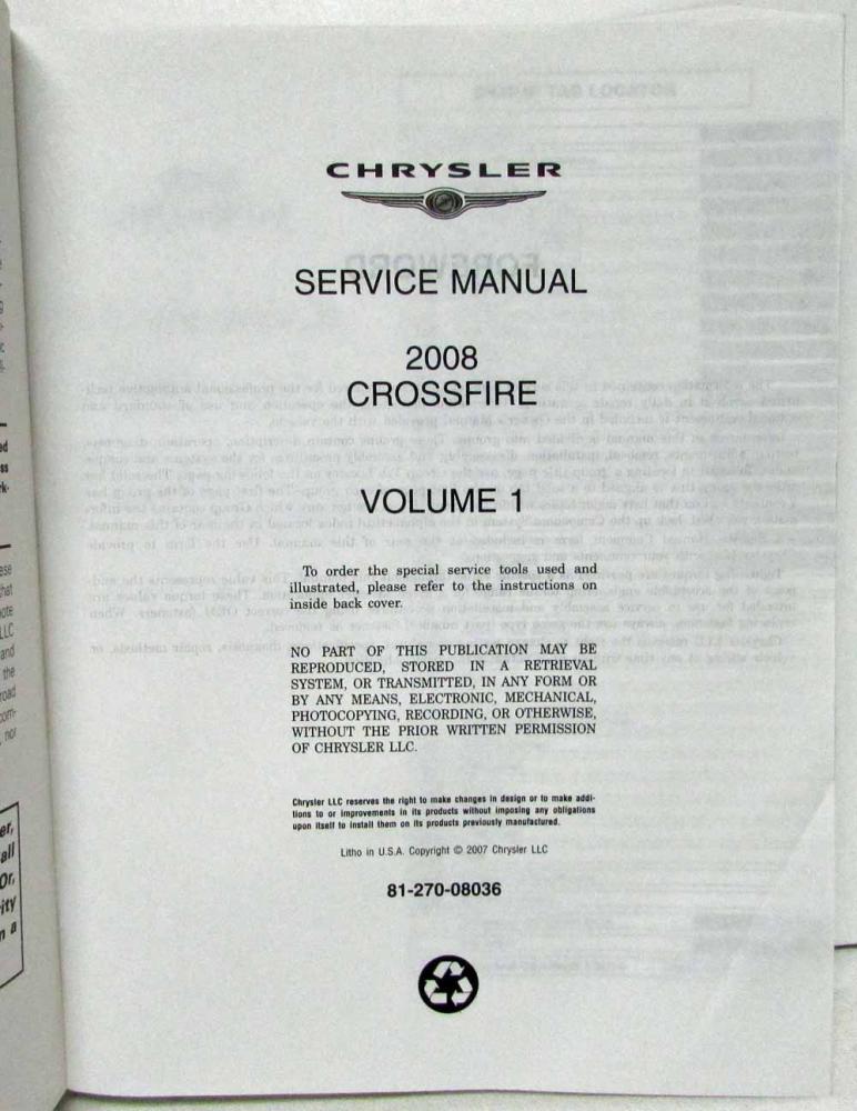 2008 Chrysler Crossfire Service Shop Repair Manual. 3 Volume Set.