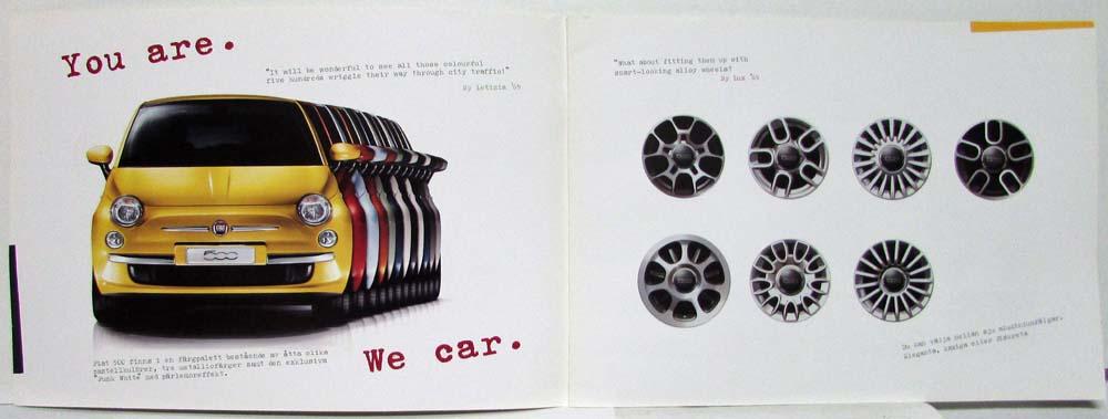 Fiat 500 finns i en fargpalett bestaende av atta olika pastellkulorer, tre metallicfarger samt den exklusiva "Funk White" med parlemoreffekt.