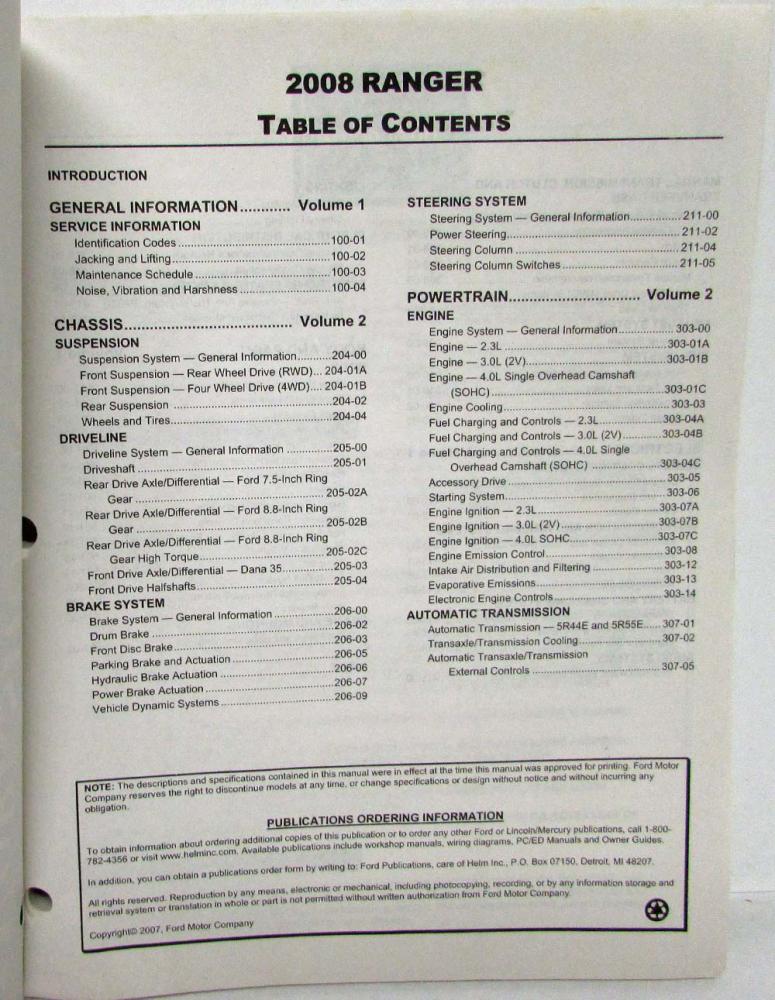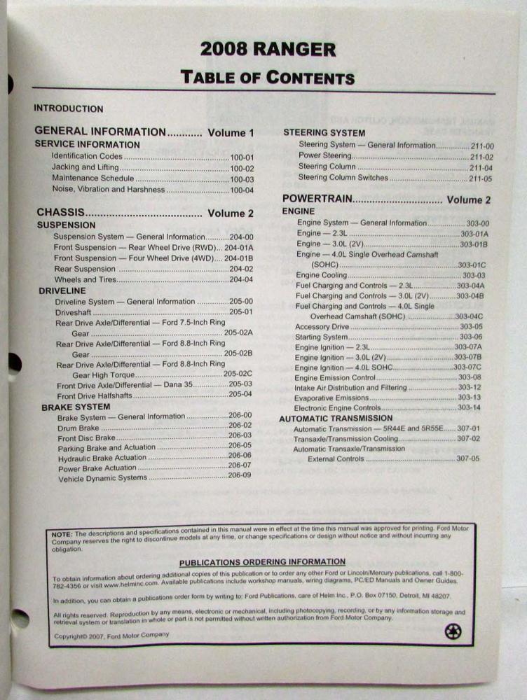2008 Ford Ranger Pickup Truck Service Shop Repair Manual Set. Volumes 1 & 2. ORIGINAL