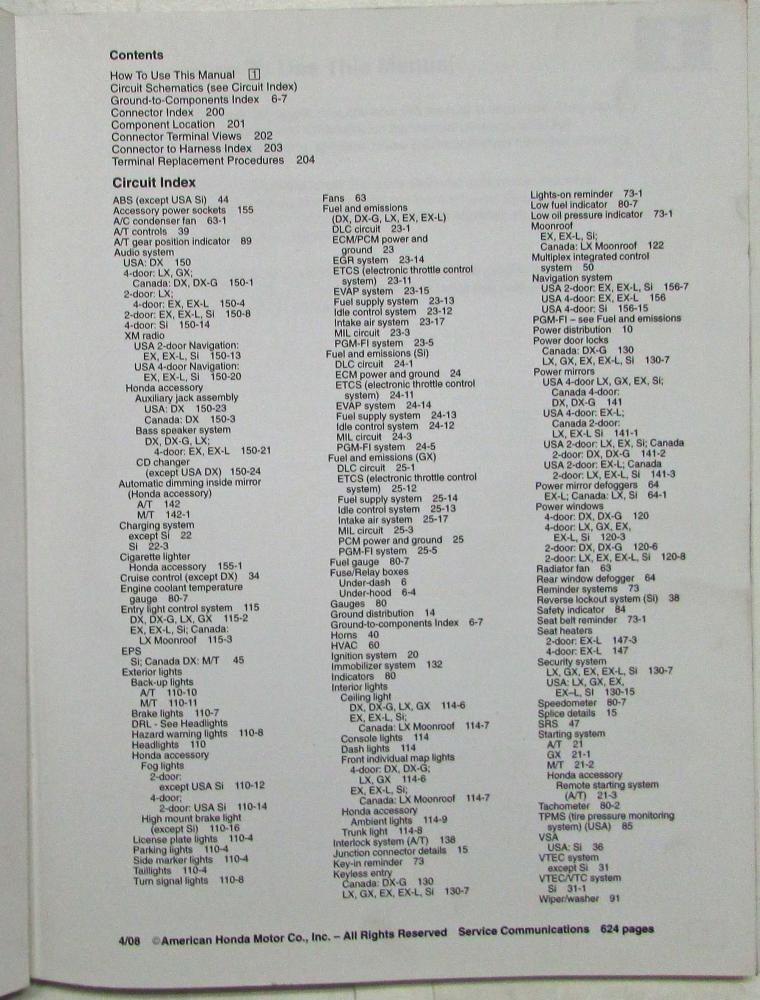 2008 Honda Civic Electrical Troubleshooting Service Manual. ORIGINAL.