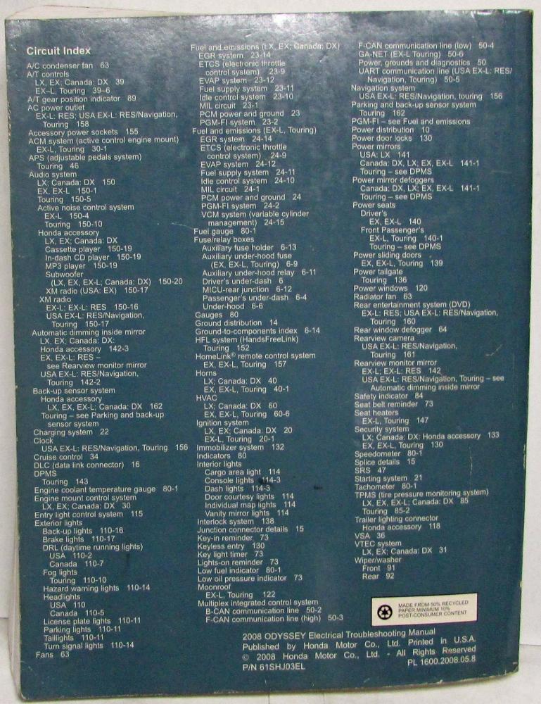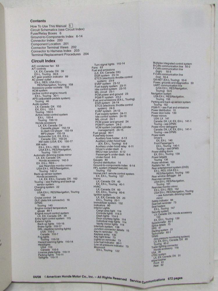 2008 Honda Odyssey Electrical Troubleshooting Service Manual. ORIGINAL.