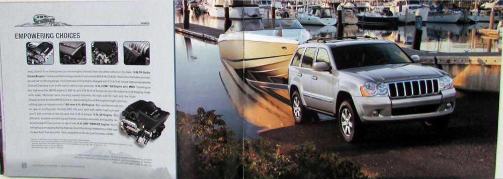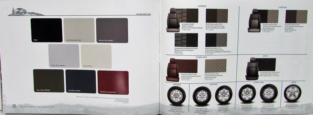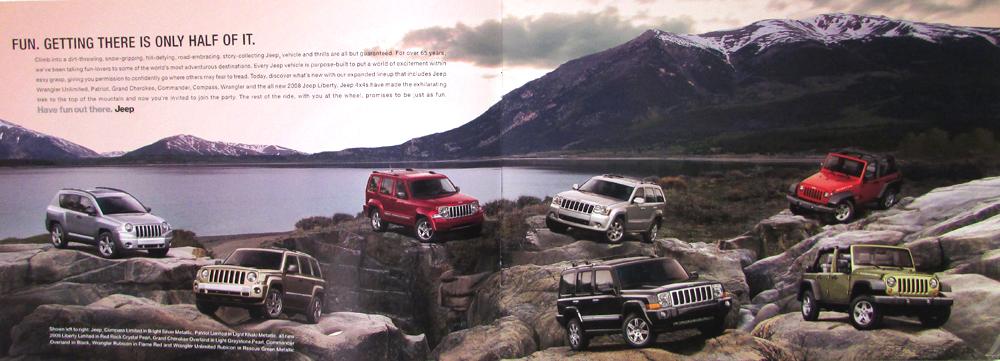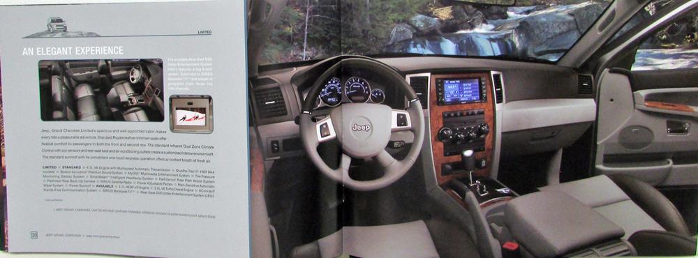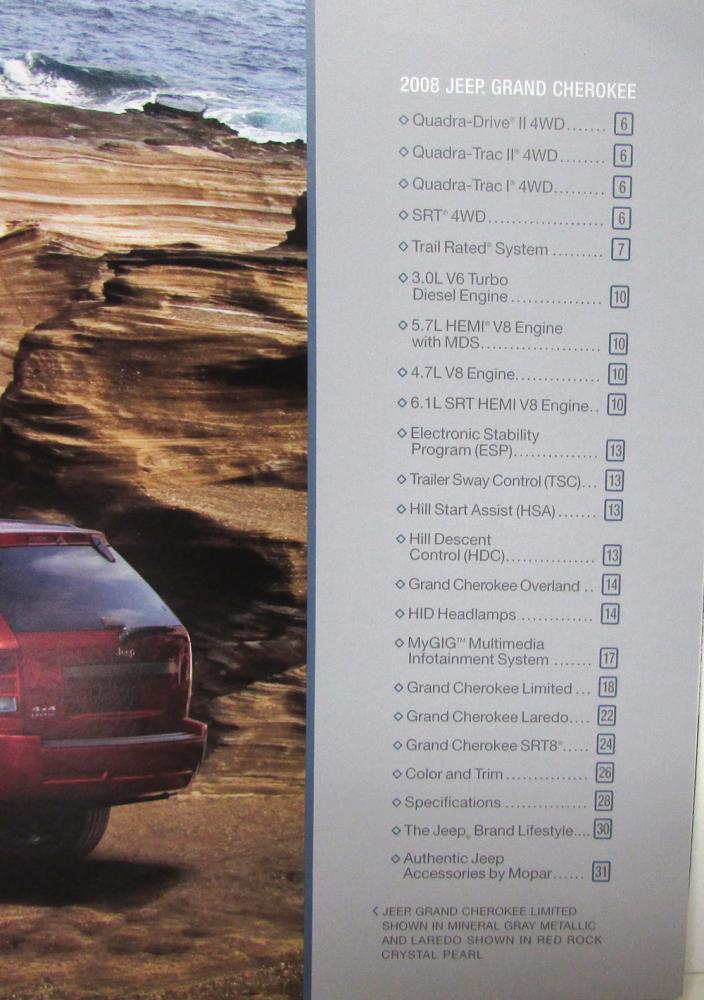 Original, color, sales brochure for the Jeep 2008 Grand Cherokee (including Laredo, Limited, Overland, and SRT8 packages). Read about 4WD and engine options, accessories, technical specs, color and trim, fabrics and leathers, and wheels. Nice color photos.