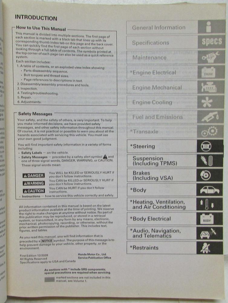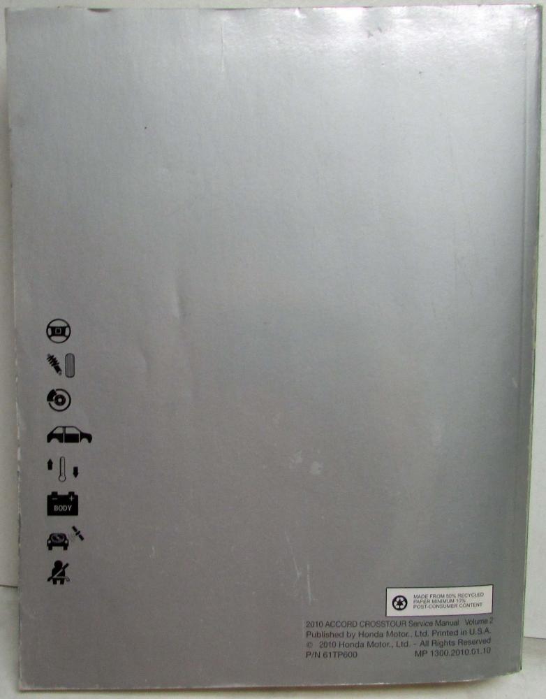 2010 Honda Accord Crosstour Service Shop Repair Manual. 2 Volume Set. ORIGINAL.