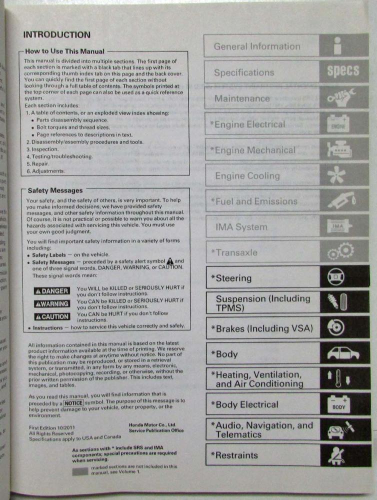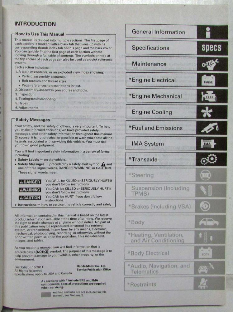 2011-2012 Honda CR-Z Service Shop Repair Manual. 2 Volume Set. ORIGINAL.