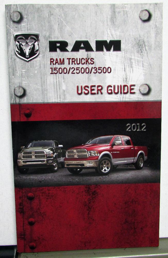 2012 Dodge Ram Truck User Guide. This Guide Booklet covers the Ram 1500, 2500, 3500 and Cummins Diesel Truck Models. The User Guide includes the extras seen in photo. All is in good condition [see photos].