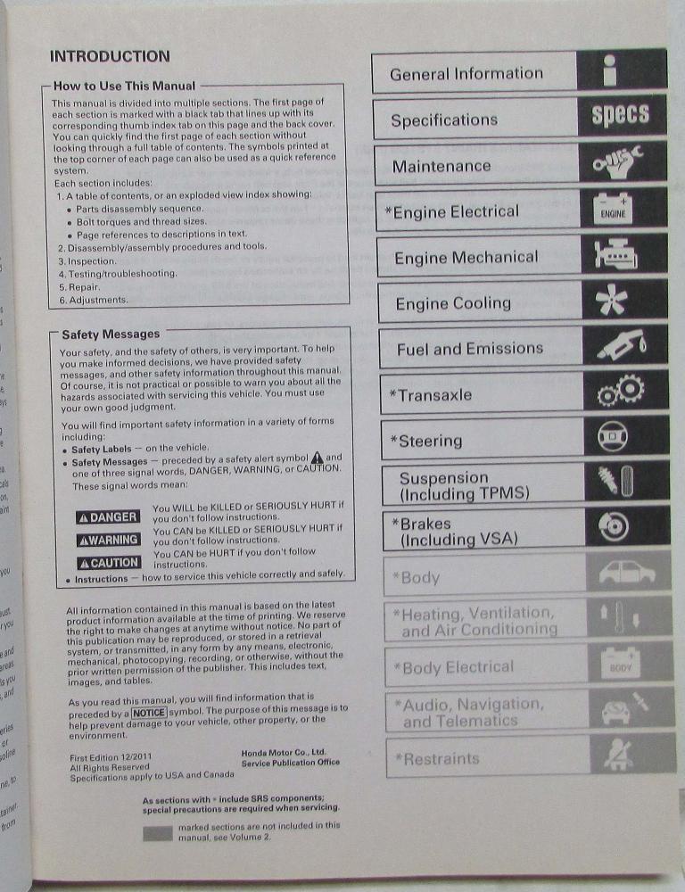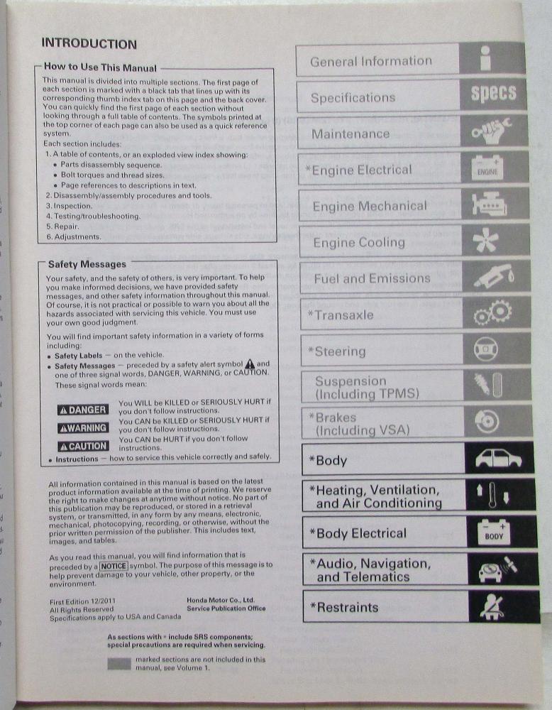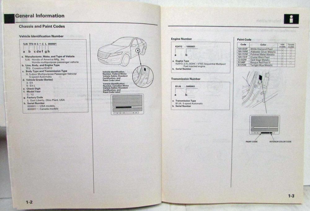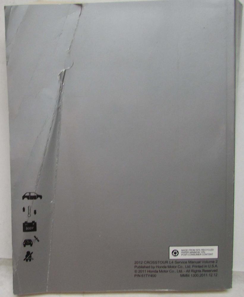 2012 Honda Crosstour L4 Service Shop Repair Manual. 2 Volume Set. ORIGINAL.